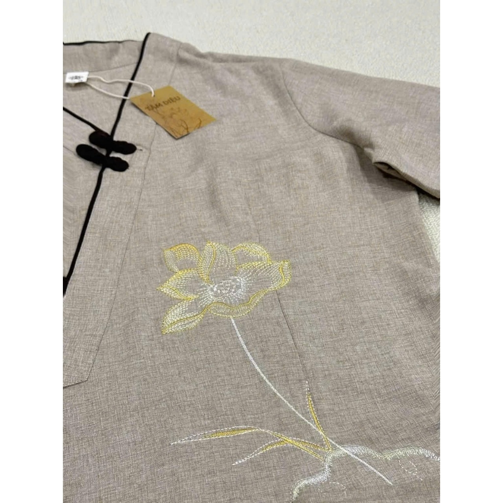 Thiết kế vạt lệch truyền thống, chỉn chu và kín đáo, tôn lên vẻ trang nghiêm của người Phật tử. Bộ pháp phục thích hợp cho cả nam và nữ, mang lại sự thanh tịnh, giản dị nhưng vẫn đẹp mắt.