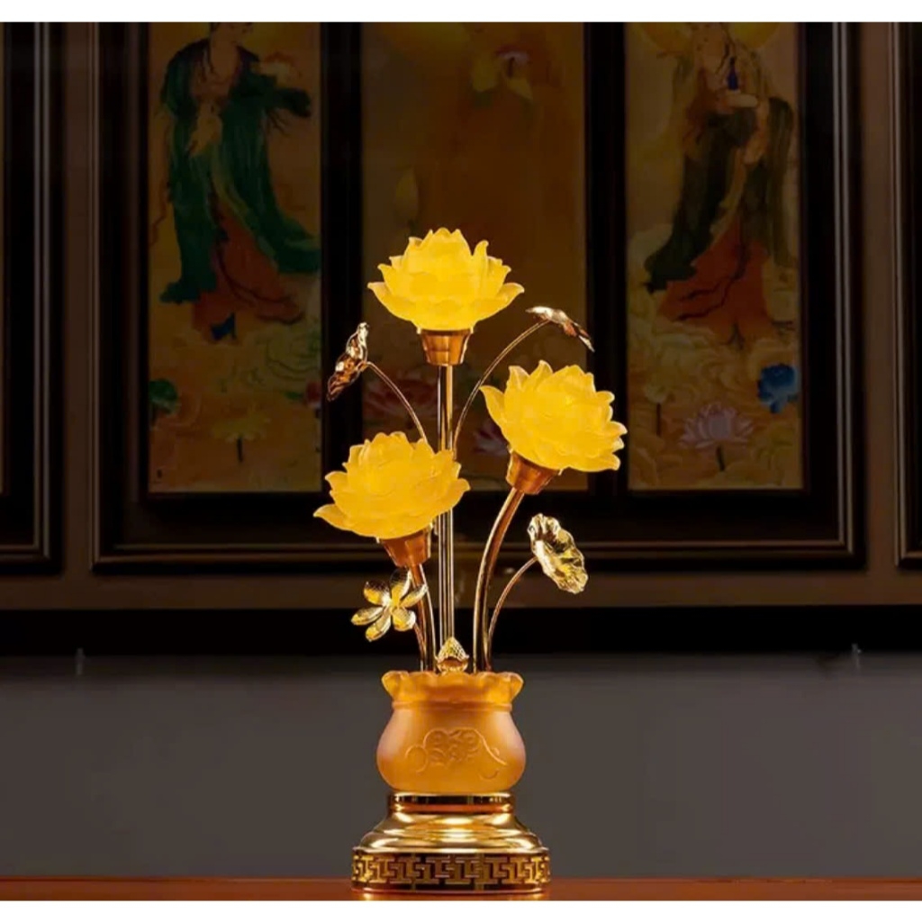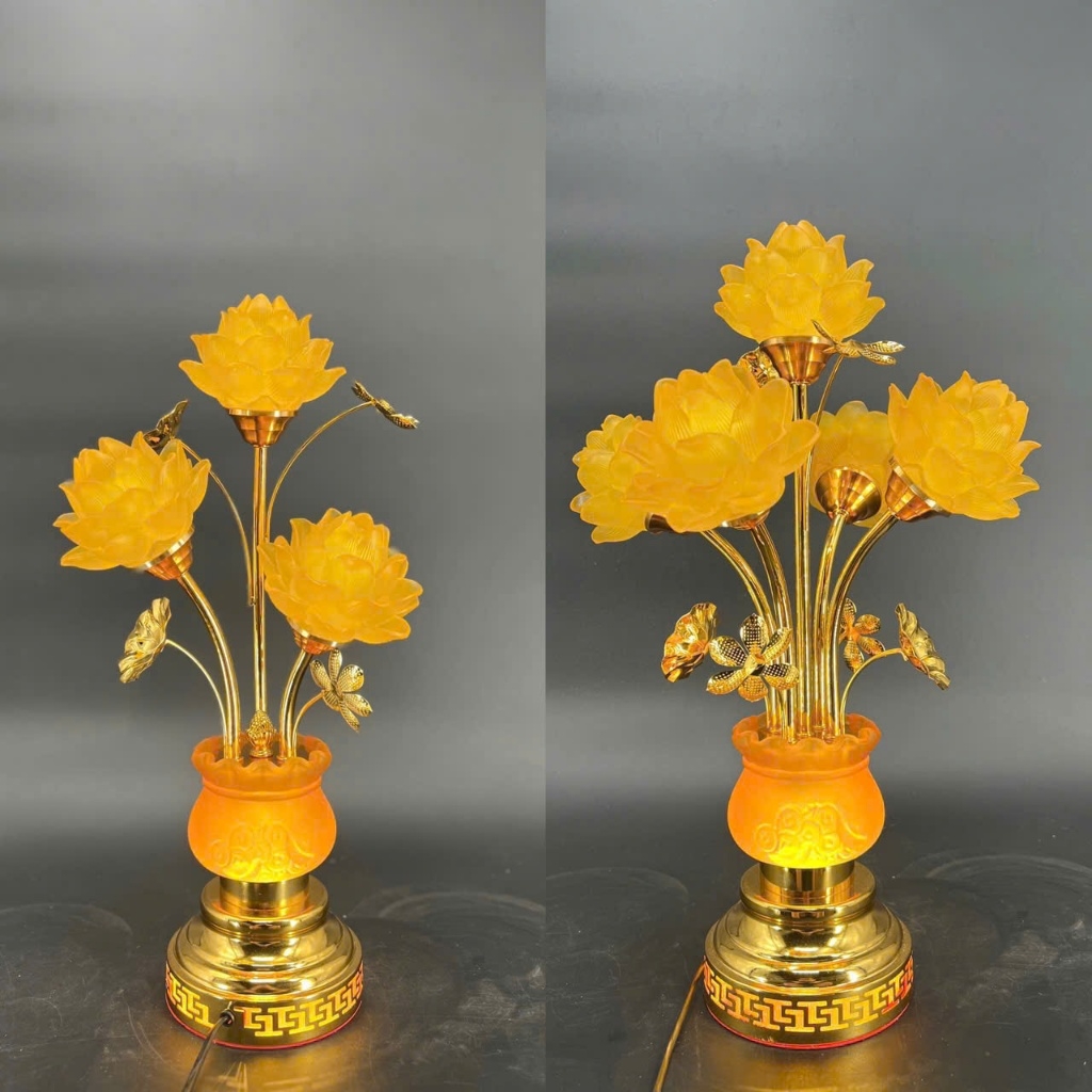 ✨ Với thiết kế sang trọng, ánh sáng ấm áp và ý nghĩa phong thủy sâu sắc, cặp đèn hoa sen vàng mẫu 3 bông / 5 bông chính là lựa chọn lý tưởng để làm đẹp và tăng thêm sự linh thiêng cho không gian thờ tự.