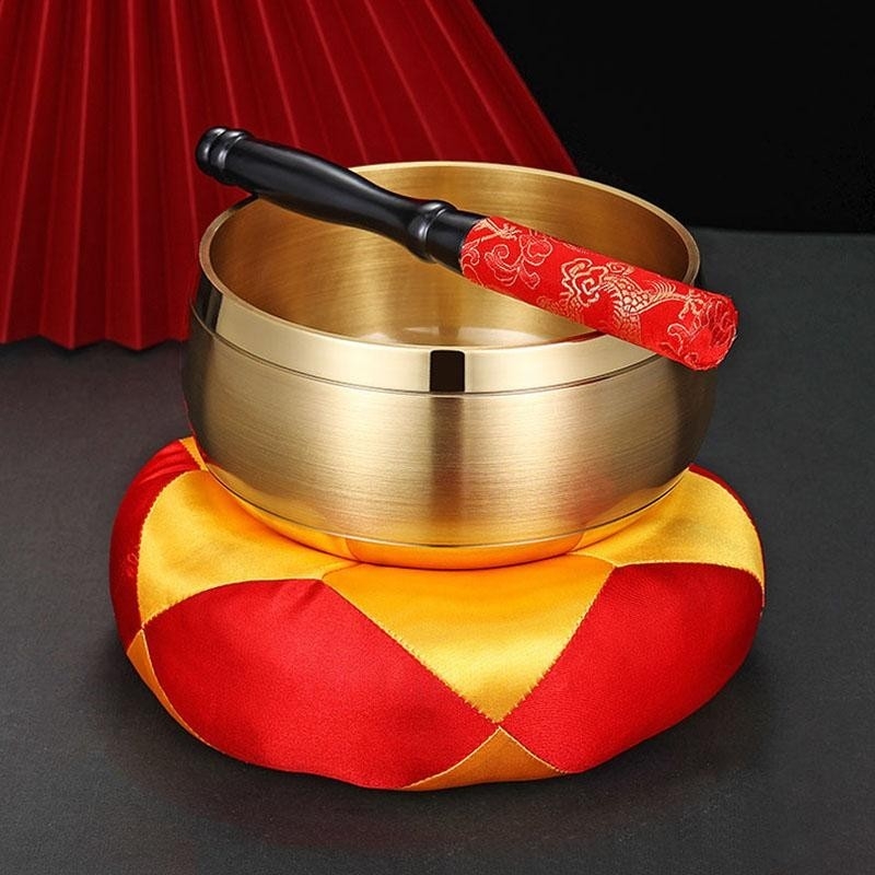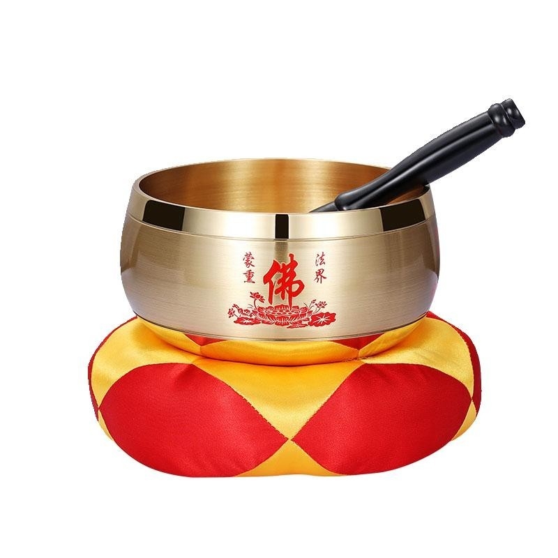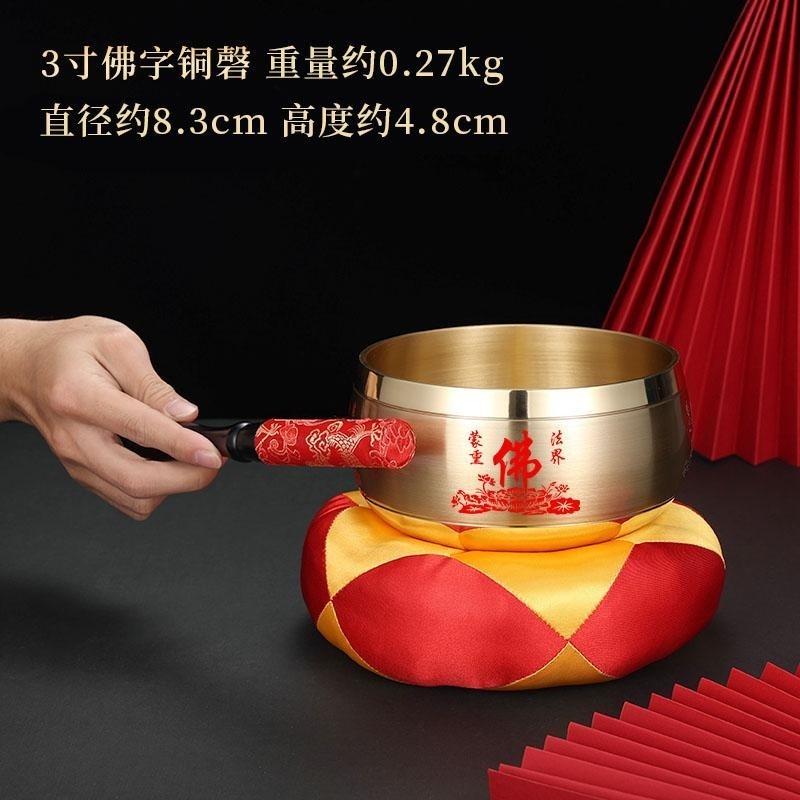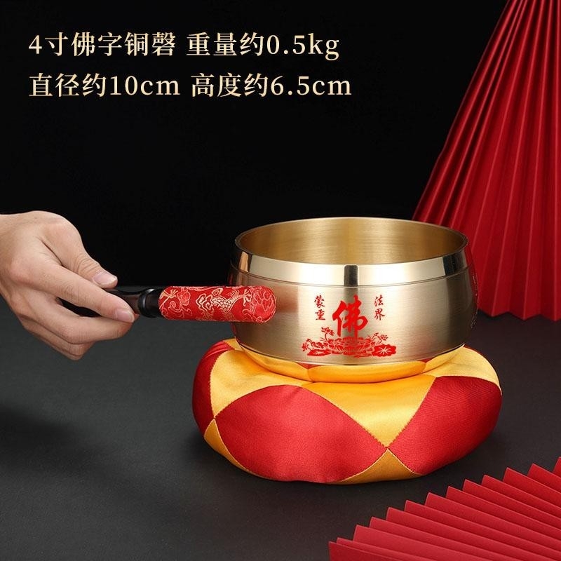 Chuông Viền Khắc Chữ Phật – Chuông Vành Pháp Khí Phật Giáo được chế tác từ đồng chất lượng cao, âm thanh vang xa, trong trẻo và trầm ấm, phù hợp sử dụng trong các nghi lễ tụng kinh, khóa lễ và thiền định.