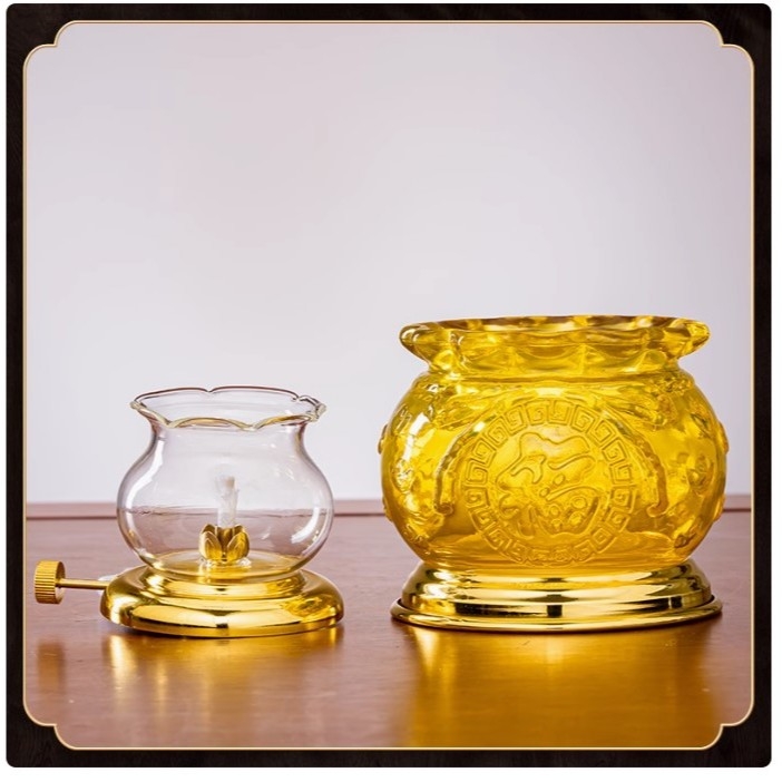 Đèn Thắp Dầu Pha Lê AP850 – Chữ Phúc là vật phẩm thờ cúng cao cấp, mang thiết kế tinh xảo kết hợp giữa chất liệu pha lê trong suốt và hoa văn chữ “Phúc” nổi bật, biểu trưng cho hạnh phúc, may mắn và phúc lộc viên mãn. Khi thắp sáng, ngọn đèn tỏa ánh sáng lung linh qua thân pha lê, tạo nên không gian trang nghiêm – thanh tịnh – sang trọng cho bàn thờ gia tiên hay bàn thờ Phật.