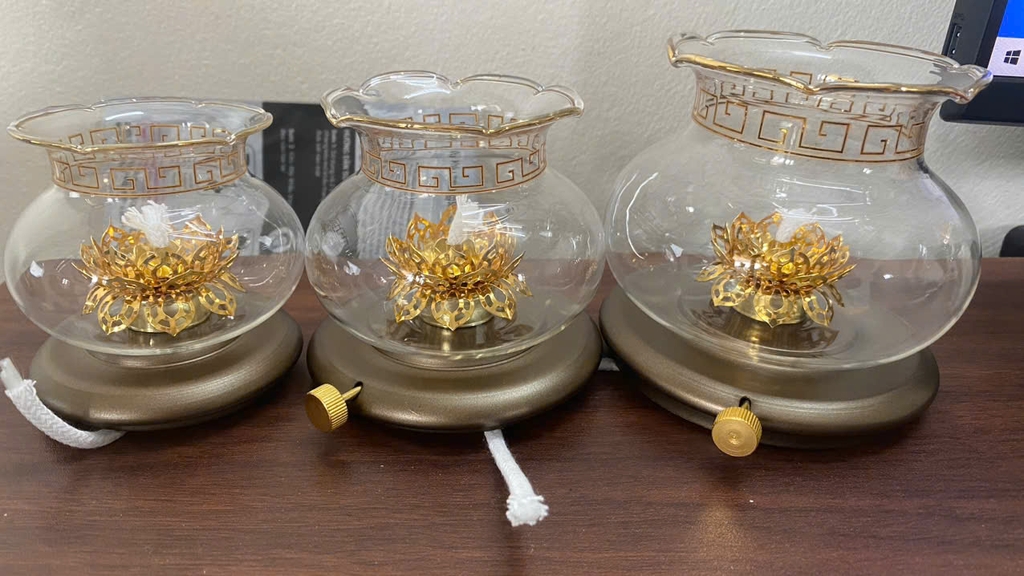Đèn Dầu Thờ Cúng Phật Pha Lê – Mã 050 được chế tác từ pha lê cao cấp, sáng bóng và tinh khiết, mang lại vẻ sang trọng và trang nghiêm cho không gian thờ cúng. Ánh sáng vàng ấm từ ngọn lửa dầu nhẹ nhàng tỏa ra, tạo cảm giác thanh tịnh và ấm cúng, phù hợp đặt trên bàn thờ Phật, bàn thờ gia tiên hoặc sử dụng trong chùa, đạo tràng.