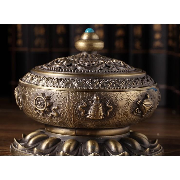 👉 Lư xông trầm Mật Tông – Bát Cát Tường không chỉ là pháp khí cúng dường mà còn là vật phẩm phong thủy cát tường, đem lại an lạc – thịnh vượng – may mắn cho gia chủ.