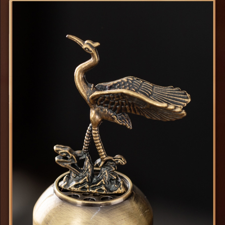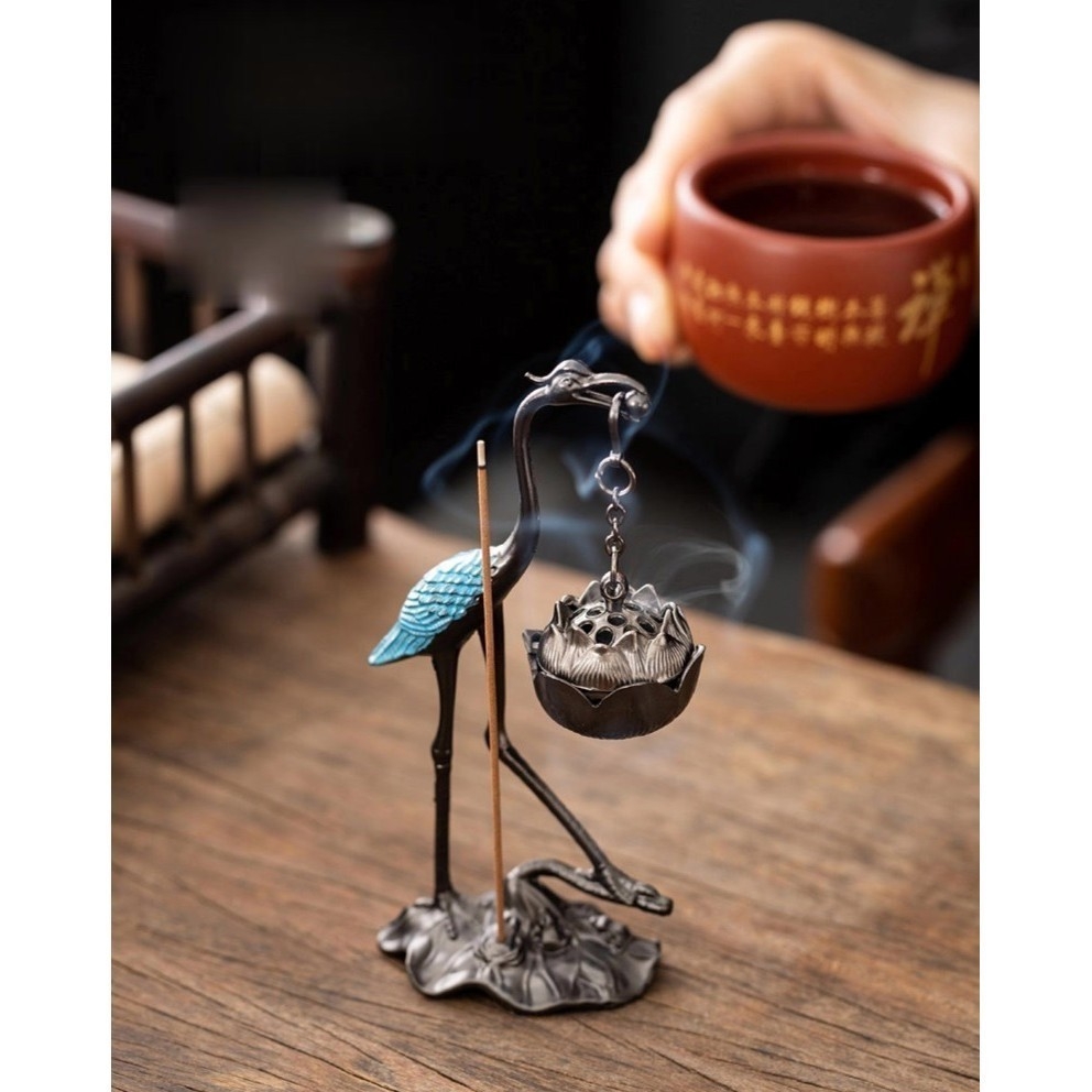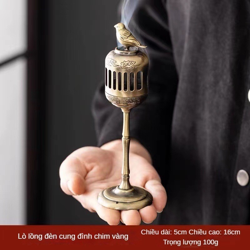 Lư Hương Hạc Cung Đình 100g – Lò Đốt Trầm Kim Loại Vạn Thọ – Kèm Đế Chống Cháy & Lỗ Cắm Nhang + Nhang Vân Mây