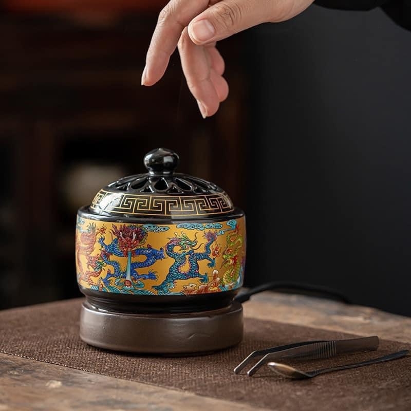 Lư Xông Điện Nhiệt Độ Cao đa năng là giải pháp hiện đại giúp bạn thưởng thức hương trầm nguyên chất và khuếch tán tinh dầu một cách tiện lợi, an toàn. Sản phẩm kết hợp 3 công dụng trong 1: đốt trầm hương, xông tinh dầu điện, và xông điện nhiệt độ cao, mang đến hương thơm lan tỏa nhanh, bền và tinh khiết.